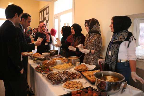 Aile Destek Merkezi’nde eğitim alan kursiyerler tarafından hazırlanan yemek ve tatlı çeşitleri davetlilere ikram etti. Kermese katılan davetliler de kursiyerler tarafından işlenen el emeği göz nuru ürünlerini gezerek satın aldı. Kermeste elde edilen gelir ile köy okulları için harcanacak.