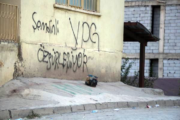 ŞEMDİNLİ-Şemdinli İlçesi'nin Beşveler Mahallesi'ne giden İbrahim Heriri Caddesi üzerindeki bir evin önen bırakılan siyah poşete sarılı piknik tüpü, korkuya neden oldu. Gece saatlerinde kimliği belirsiz kişi ya da kişiler tarafından bırakılan tüp, sabah saatlerinde zabıta ekipleri ve vatandaşlar tarafından fark edildi. Olayın polise haber verilmesi üzerine çevrede zırhlı araçlarla önlen alınıp, cadde trafiğe kapatıldı. Ardından bantlarla sarılı piknik tüpüne zırhlı araçtan ateş edilerek kontrol edildi. Herhangi bir patlamanın olmaması üzerine tüp olay yerinden kaldırıldı. Piknik tüpünün önünde bulunduğu duvarda ise 'Şemdinli Özgürleşiyor YPG' yazısı dikkat çekti.