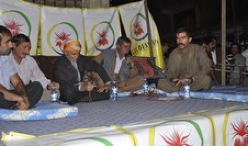 “Bu tür programların yapılmasın da geç kalındığını ancak ne yazık ki sistemin baskıları yüzünden örf ve adetlerimizin unutulduğunu, yüzyıllardır Kürt halkının örf ve adetleri ile dili üzerine yasaklar konulmuştur” dedi ve daha sonrasında dengbêjler seslendirdikleri Kürtçe parçalarla misafirlere müzik ziyafeti verildi.