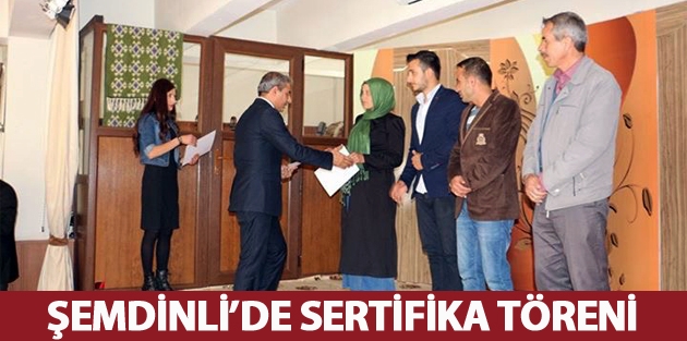 Şemdinli İlçe Halk Eğitim merkezi konferans salonunda düzenlenen sertifika töreninde kısa bir açıklamada bulunan Şemdinli Esnaf ve Sanatkarlar Odası Başkanı Muharrem Tekin, genç girişimci arkadaşlarının bu sertifikalar sayesinde yeni iş kurma heyecanı sevindirici olduğunu belirtti.