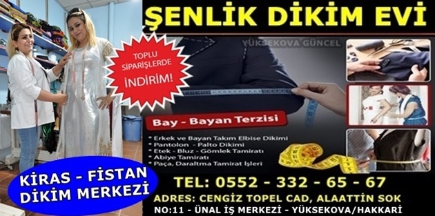 Yüksekova'da Yıllardır hizmet veren Şenlik Bay - Bayan dikim evi, yeni yerine taşınarak, Yöresel Kiras ve Fistan dikiminide başlatarak sizleri bekliyor.