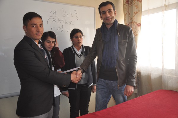Şemsettin Onay Anadolu Lisesi öğrencisi Özgür Karaman, İsmet Alkan Anadolu Liesi Öğrencisi Sözdar Yıldız, Şemsettin Anadolu Lisesi Öğrencisi Çiçek Keskin, Eğitim-Sen Yüksekova Temsilcisi Emre Çolakoğlu tarafından ödül verildi.
