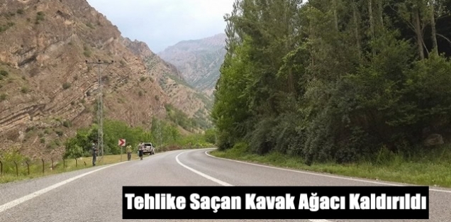 Hakkari-Çukurca karayolu üzerinde bulunan ve yola doğru bükülerek tehlike oluşturan kavak ağacı kesilerek kaldırıldı.