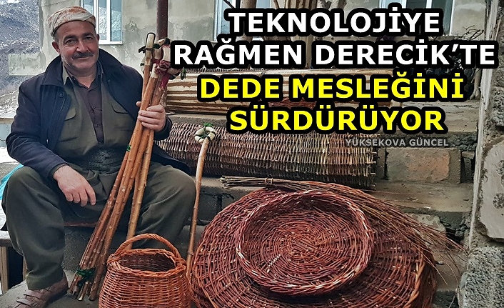 Derecik ilçesinde yaşayan İskender Dayan, teknolojiye rağmen sınırda dede mesleği sepet ve baston yapımını sürdürüyor.
