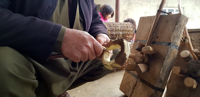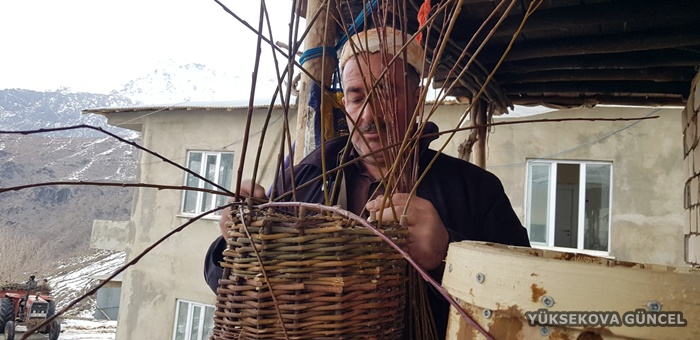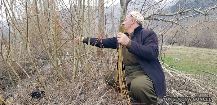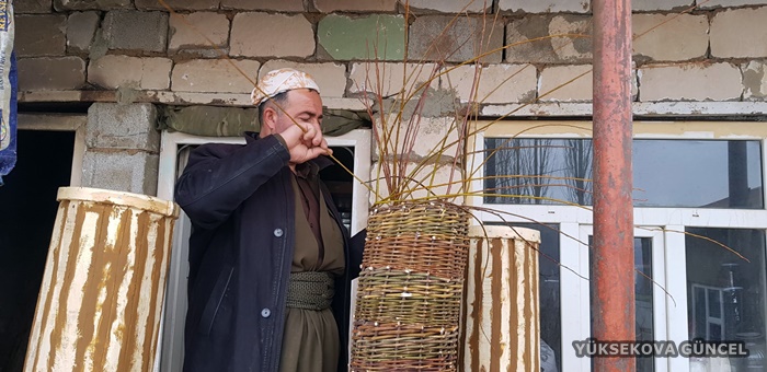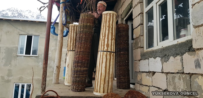 Evinin yakınlarında topladığı söğüt ağacı dallarından sepet, kener ağacından da baston yapan Dayan, teknolojiye rağmen Irak sınırında dedesinin mesleğini sürdürüyor.