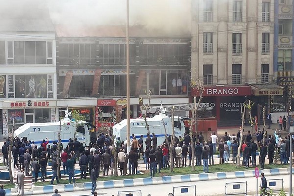 Yüksekova İlçe Emniyet Müdürlüğü'ne 50 metre uzaklıkta bulunan olay yerine ilk olarak, Emniyet Müdürlüğü'ne bağlı 2 tane Toplumsal Olaylara Müdahale Aracı (TOMA) geldi.