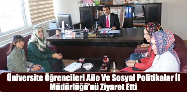 Hakkari Üniversitesi Eğitim Fakültesi Din Kültürü ve Ahlak Bilgisi Öğretmenliği Bölümü 3. sınıf öğrencileri Ayşe Ulaş, Gülnaz Kaplan Bedriye Evrenk, Nurdan Bucak ve Şehristan Aktaş isimli öğrenciler Topluma Hizmet Uygulamaları ile verilen hizmetler hakkında bilgi edinmek için Aile ve Sosyal Politikalar Müdürünü ziyaret etti.