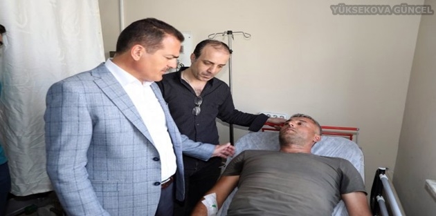 Hakkari Valisi İdris Akbıyık, Şemdinli-Yüksekova karayolunda menfez kontrolü sırasında meydana gelen patlama sonucu hafif yaralanan işçileri ziyaret etti