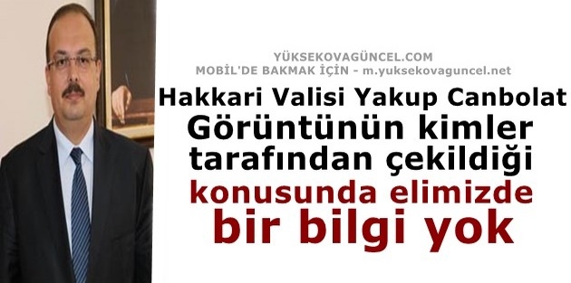 Hakkari Valisi Yakup Canbolat, Yüksekova'da çekilen vahşet görüntüleri hakkında, "Görüntünün kimler tarafından çekildiği konusunda elimizde bir bilgi yok" dedi.