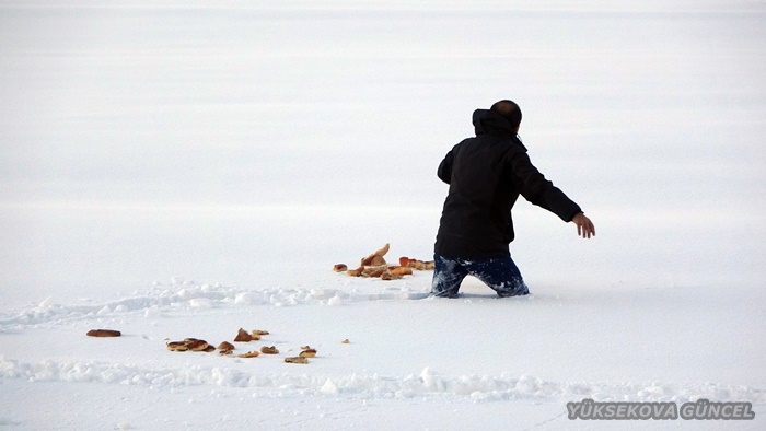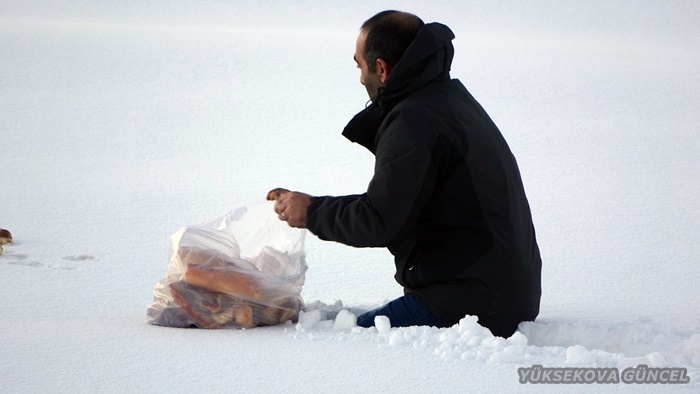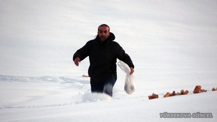 Yüksekova ilçesindeki Sokak Hayvanlarını Barındırma ve Koruma Derneği Başkanı Cebrail Çelik, yaban hayvanlar aç kalmasın diye dağ, tepe, ova demeden soğuk havaya rağmen beline kadar karda yürüyerek doğaya ekmek bıraktı.