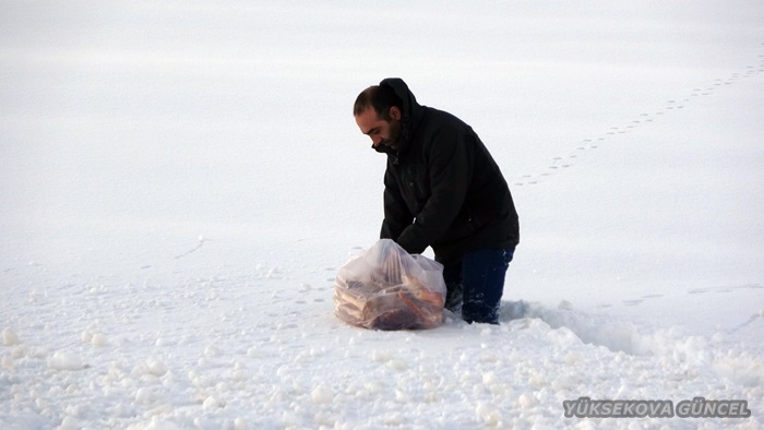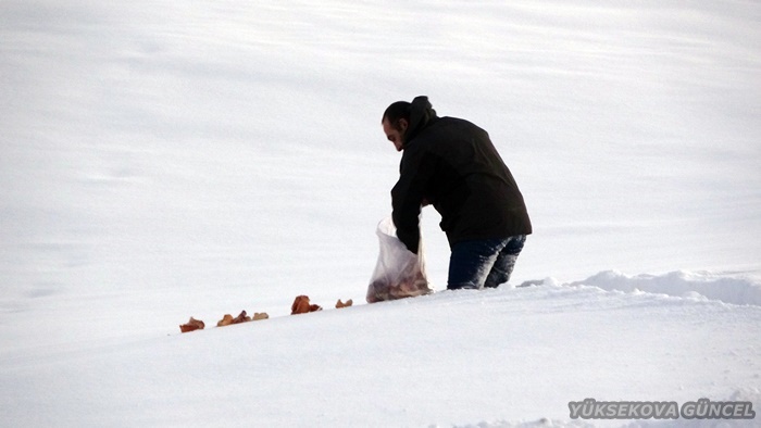 Kış mevsimin başlamasıyla yiyecek bulamayan yaban hayvan için harekete geçen Yüksekova Sokak Hayvanlarını Barındırma ve Koruma Derneği Başkanı Cebrail Çelik, ilçenin tüm bölgelerini gezerek yaban hayvanlara yiyecek bırakmaya devam ediyor.