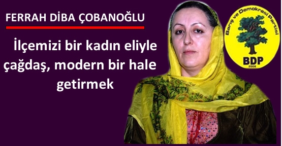 2014'de yapılacak yerel seçimlerde Yüksekova Belediye Başkanlığı için başvurular dün tamamlandı. Kadın kotası kapsamında 6 başvurunun yapıldığı Belediye Başkanlığı aday adaylarından biride Ferah Diba Çobanoğlu...