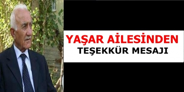 Yaşar ailesinden teşekkür mesajı
