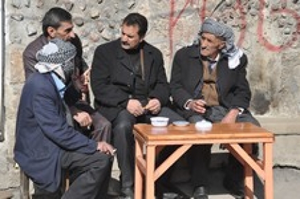 Hakkâri’nin Yüksekova ilçesinde kış ortasında bahar mevsimini yaşayan Yüksekovalılar kahve önlerinde oturarak sıcaklığın tadını çıkartıyor.