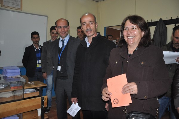 BDP Yüksekova Belediye Eş Başkanı Adayı Ruken Yetişkin, sabah saatlerin Eş başkan adaylarından Tacettin Sefalı ile birlikte Yüksekova Kız Teknik Meslek Lisesinde oyunu kullandı.