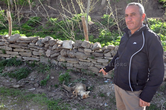 Muhtar Tahir Düzce, "Köyün içinde birkaç arı kovanı var. Tilki de aç olduğu için köye gelmiş, fakat arıların saldırına maruz kalmış gibi gözüküyor. Tilki halsiz duruma gelmiş, gözleri de sanki görmüyor. Tilkiyi de bu halde görünce hemen ilgililere haber verdik. Geldiklerinde teslim edeceğiz" dedi.