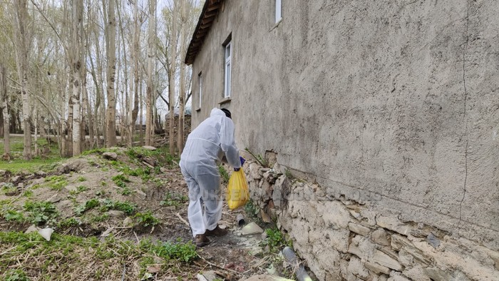 İlçe merkezine 7 kilometre uzaklıkta bulunan Bataklı (Silvanan) köyünde yaşayan Ataş ailesine ait evde, Yüksekova Belediyesi Veteriner Hekimi Hekim Kaçan tarafından inceleme yapıldı.