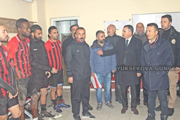Maç sonunda Kaymakam Kendüzler soyunma odasında Yüksekova Belediyesporlu futbolcuları ziyaret ederek tebrik etti.