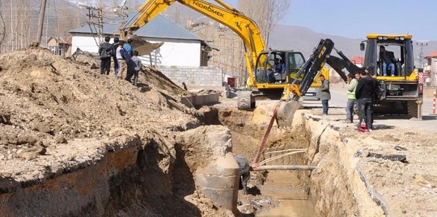 Yüksekova'daki altyapı çalışmaları esnasında Dağlıca karayolu üzerinde bulunan 300’lük aspes içme suyu isale hattı zarar gördü.