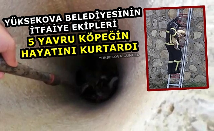 Yüksekova ilçesinde kuyuya düşen 4 yavru köpek ve dere yatağında mahsur kalan yavru köpekle beraber 5 yavru köpek itfaiye ekiplerinin çalışmaları sonucu kurtarıldı.