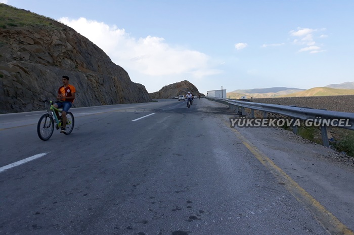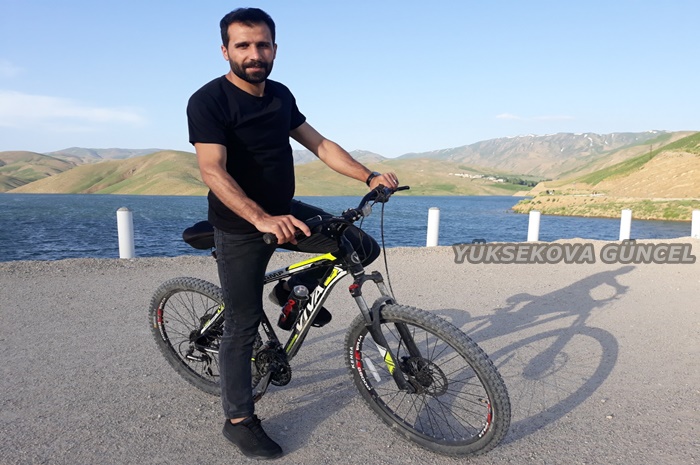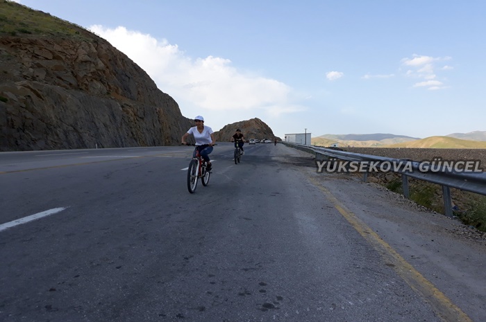 Yüksekova ilçesindeki bisiklet tutkunları, Dilimli Barajı'na giderek hem spor yapıyor hem de eğleniyor.