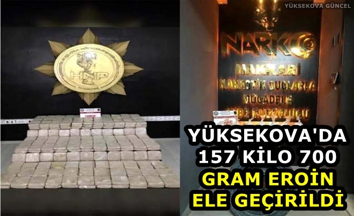 Valilik tarafından yapılan açıklamada, "İl Emniyet Müdürlüğü görevlilerimizce 30 Kasım 2020 günü ilimiz Yüksekova İlçesi Orman Caddesi üzerinde durumundan şüphelenilerek durdurulan bir aracın bagaj kısmında yapılan aramada 310 adet preslenmiş kalıp halde bulunan toplamda 157.700 gram eroin maddesi ele geçirilmiştir. Olay ile ilgili 2 şahıs yakalanarak gözaltına alınmıştır.