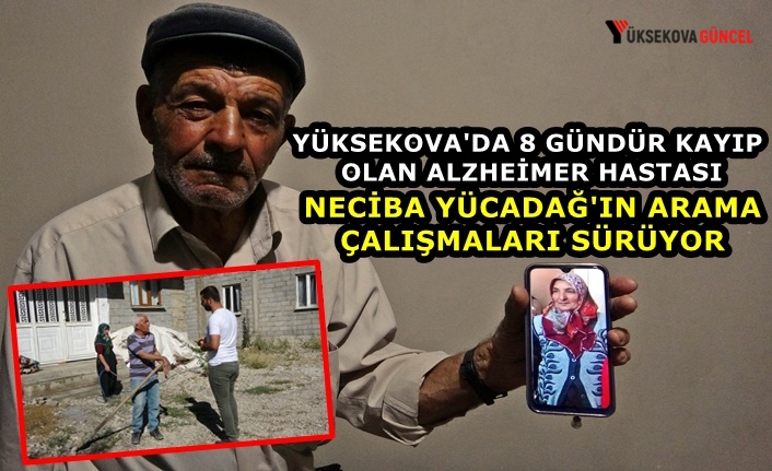 Yüksekova ilçesinde 8 gün önce kaybolan alzaymır hastası Neciba Yücedağ her yerde aranırken eşi Muzaffer Yücedağ, “Eşimin 8 gündür bulunmaması bizi artık endişelendiriyor” dedi.
