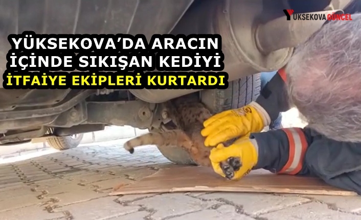 Yüksekova ilçesinde bir aracın alt kısmında sıkışan kedi, itfaiye ekiplerinin uzun uğraşları sonucu kurtarıldı.