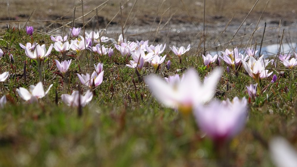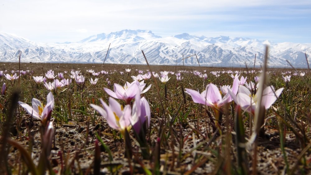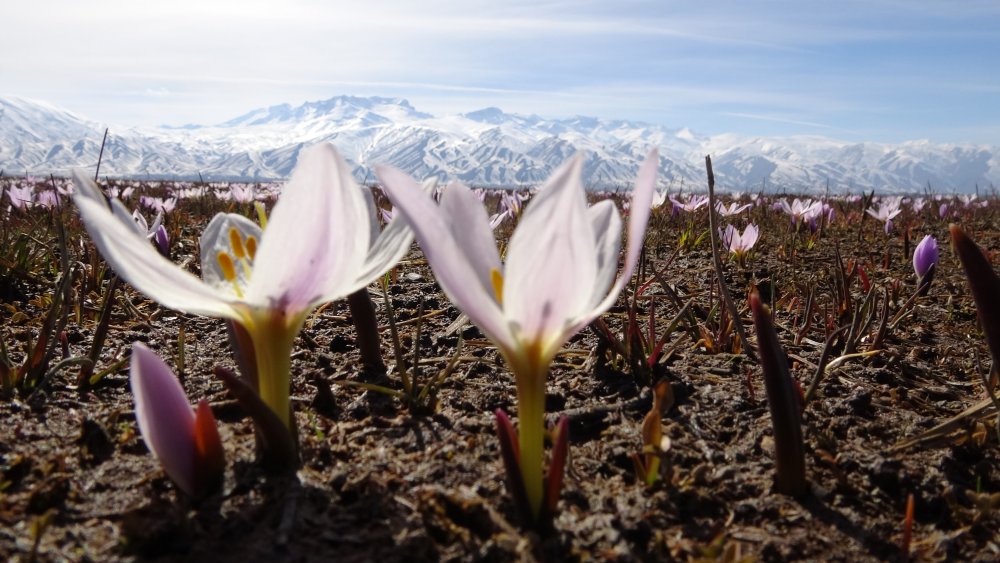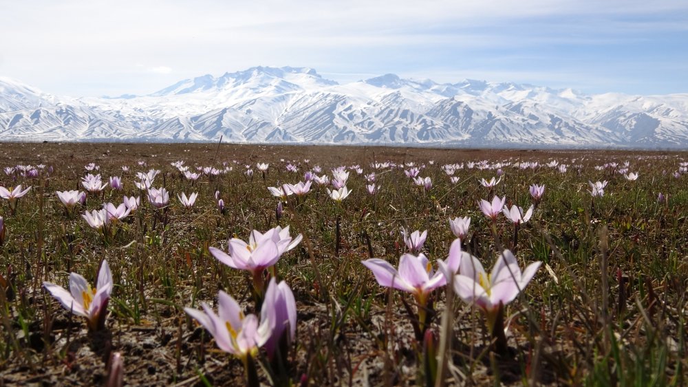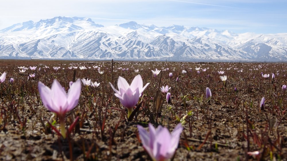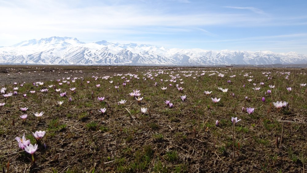 Beyaz bir örtü gibi ovayı süsleyen kardelenlerin etrafını çeviren karlar ise ayrı bir güzellik katıyor.