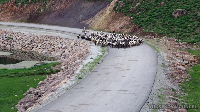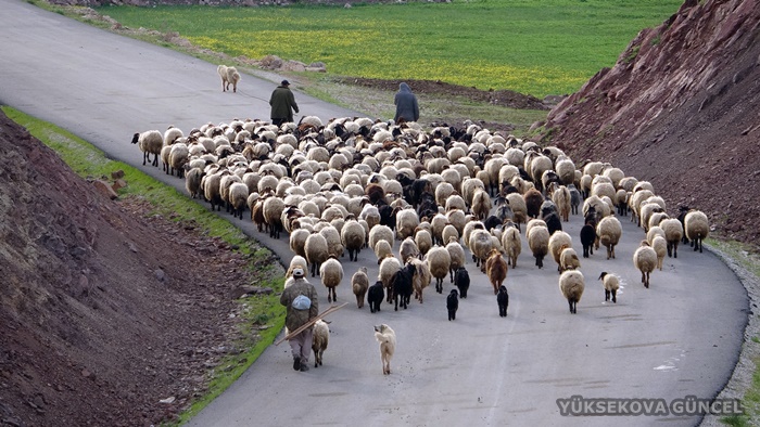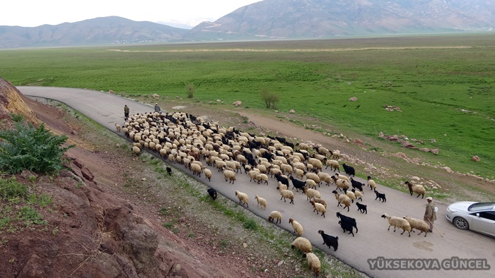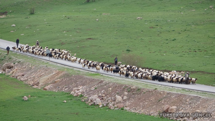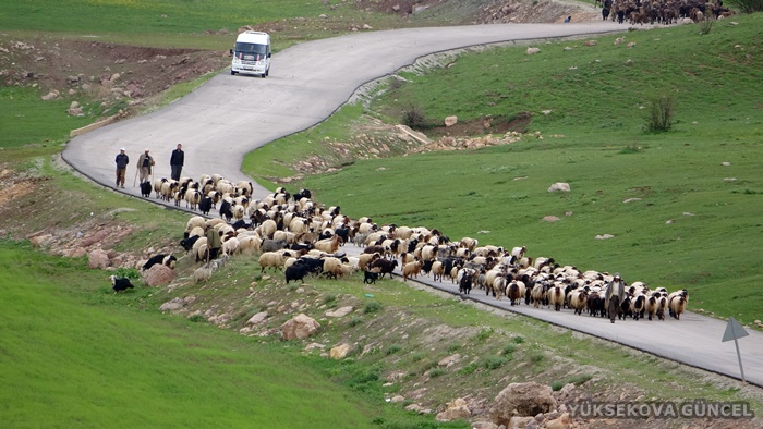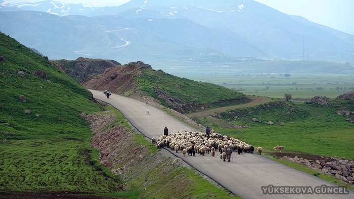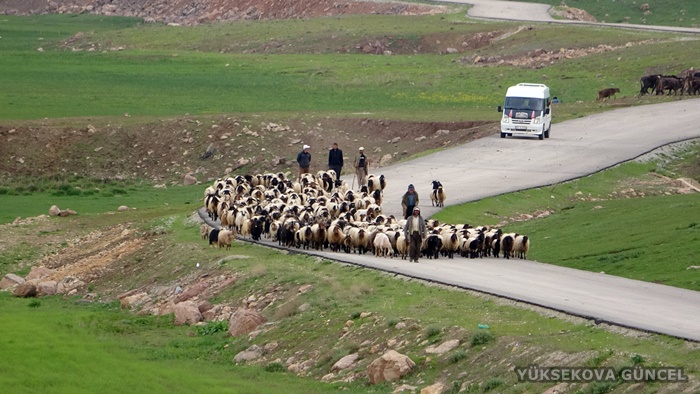 Derecik ilçesinde kış boyunca hayvanlarına bakan göçerler, ilkbaharın başlamasıyla Yüksekova'ya doğru yol aldı.