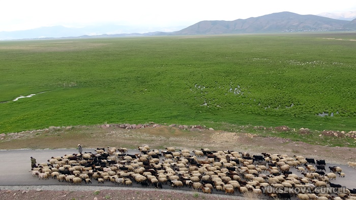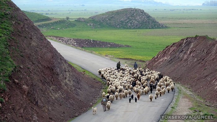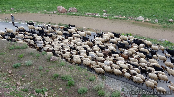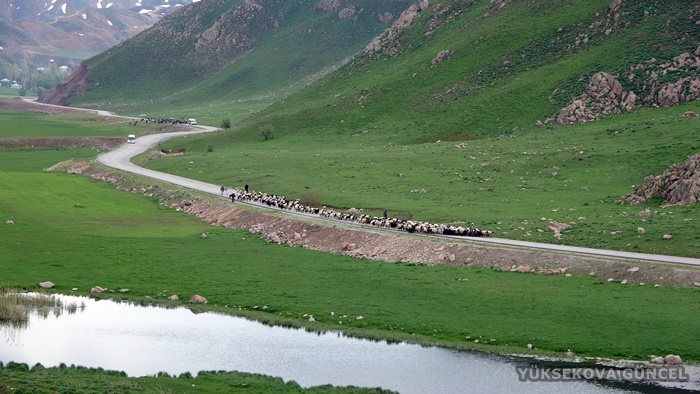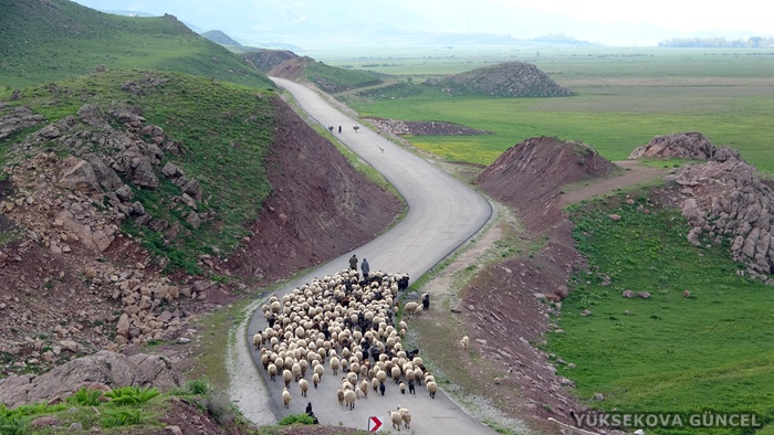 2 bin 500 rakımlı Doski Vadisi'ne doğru yol alan göçerlerin 300 koyunla karayolundaki yolculuğu ise güzel görüntüler oluşturdu.
