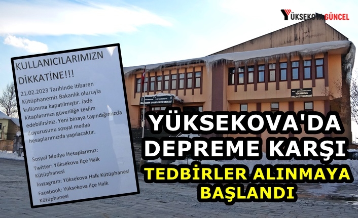 İlçedeki birçok etkinlik, kurs ve toplantının yapıldığı ve içerisinde kütüphanenin de bulunduğu kültür merkezinin camına asılan yazıda, Kültür ve Turizm Bakanlığı Yatırım ve İşletmeler Genel Müdürlüğü tarafından 81 il valiliğine gönderilen yazıda, 6 Mart 2007 tarihinden önce yapılmış binaların deprem dayanımı incelenerek gerekli tedbirlerin alınması gerektiği belirtilerek, “Söz konusu genelge uyarınca bakanlığımıza bağlı hizmet veren kültür merkezi binalarının depreme dayanıklılık incelemeleri bütçe imkanları ve illerden gelen istekler yönünde sürdürülmektedir. Yapılan incelemeler sonucunda depreme dayanıklı olmadığı tespit edilen ve güçlendirmeye yönelik proje veya ihale süreçleri devam eden kültür merkezi hizmet binalarının can güvenliği bakımından kullanımının durdurulması gerekmektedir. Makamlarımızca uygun görüldüğü takdirde güçlendirmeye yönelik proje veya ihale süreçleri devam eden Muş Merkez Malazgirt Prof. Dr. Haluk Dursun, Hakkari Yüksekova Selahaddin Eyyubi Kültür Merkezi, Zonguldak Atatürk Kültür Merkezi ve Çankırı 100. Yıl Kültür Merkezi'nin kullanımı durdurulmuştur" denildi.
