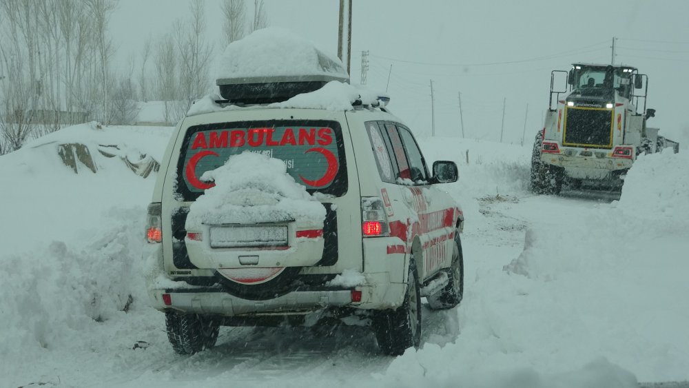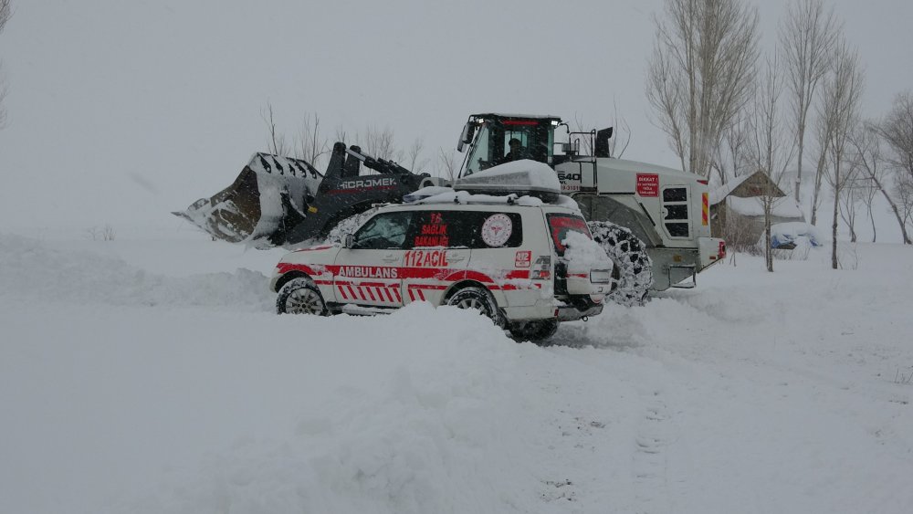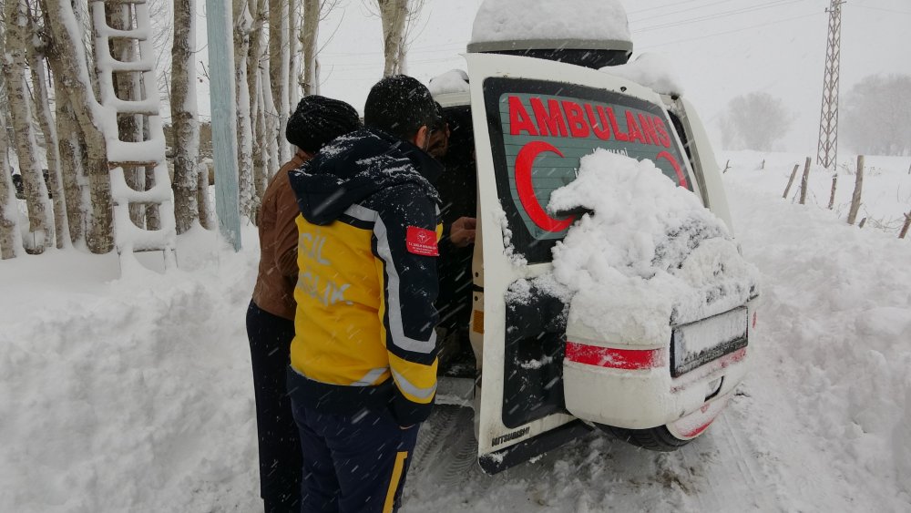 Karla mücadele ekiplerinin yürüttüğü yol açma çalışması sonucu sağlık ekipleri hastaya ulaştı.