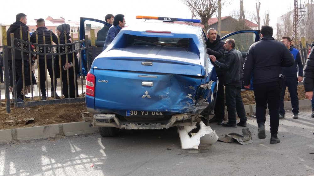 Öğlen saat 12.00 sıralarında Toyota Hılux markalı araç seyir halinde olan Yüksekova Belediyesine ait 30YJ044 plakalı Zabıta aracına arkadan çarpmasıyla feci kaza meydana geldi.