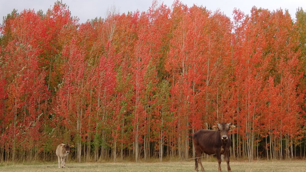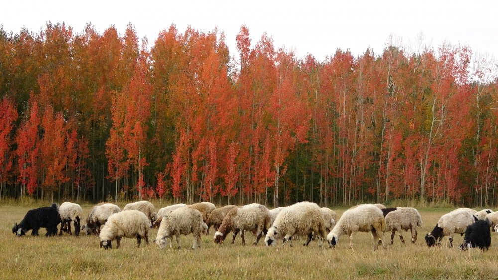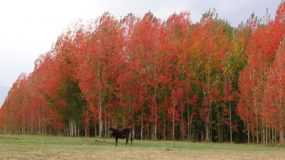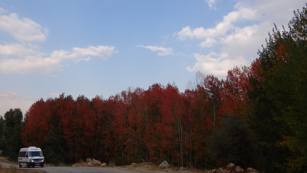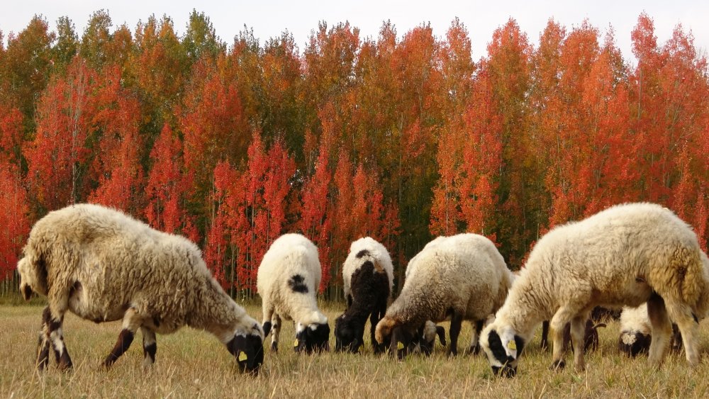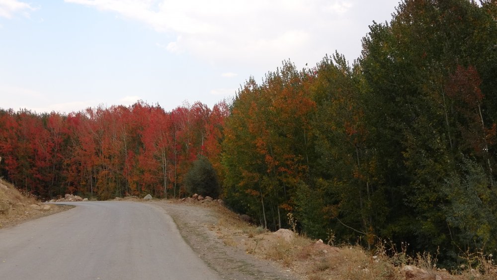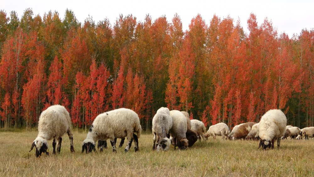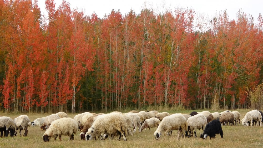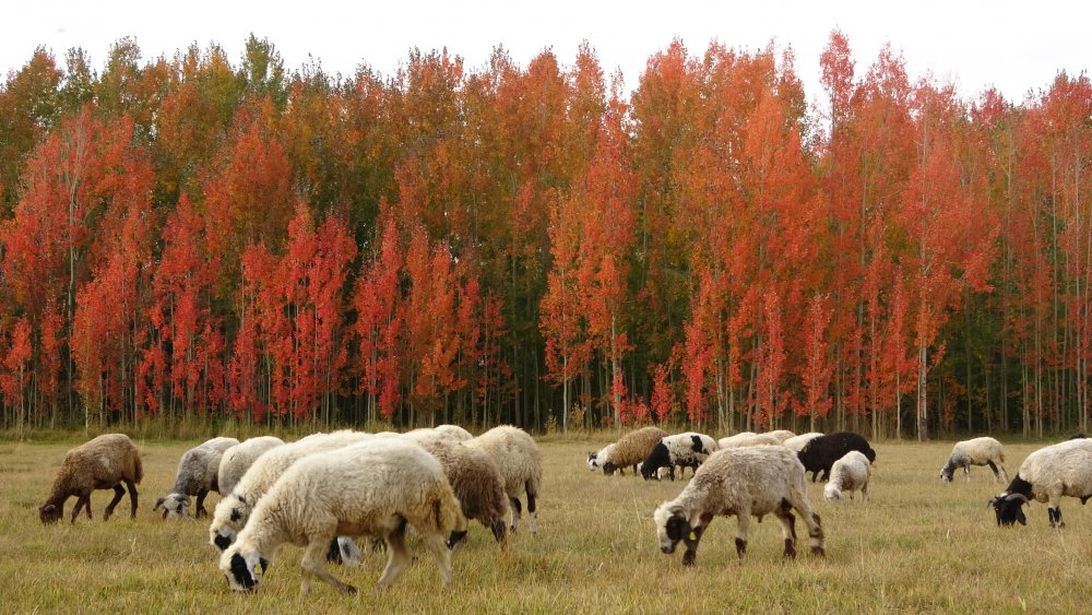 Bir tarafı kırmızı bir tarafı ise yeşile bürünen ağaçların otlanan koyunlarla oluşturduğu güzellik kartpostallıkları andırıyor.
