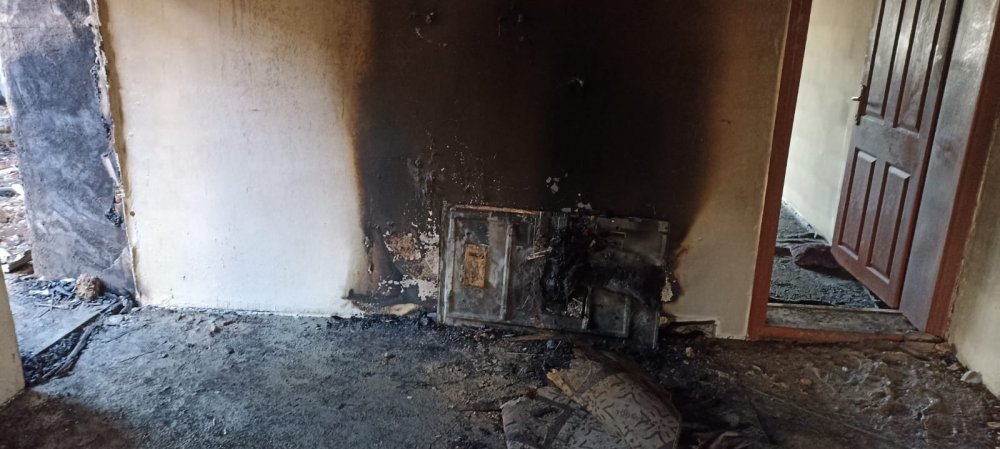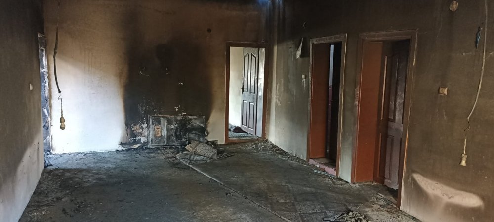 Vatandaşların da desteğiyle yangın kısa sürede söndürülürken, ev ise kullanılamaz hale geldi.