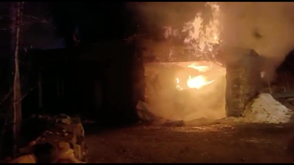 Hüseyin Saydan isimli vatandaşa ait evde henüz belirlenmeyen bir nedenle çıkan yangında alevler kısa sürede büyüdü.