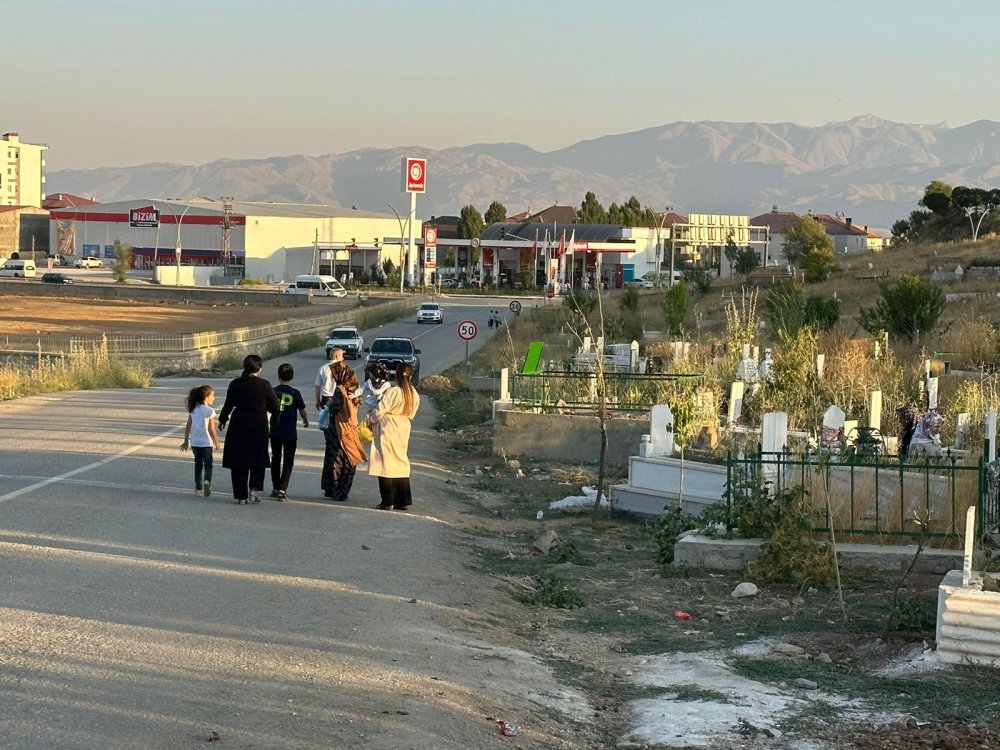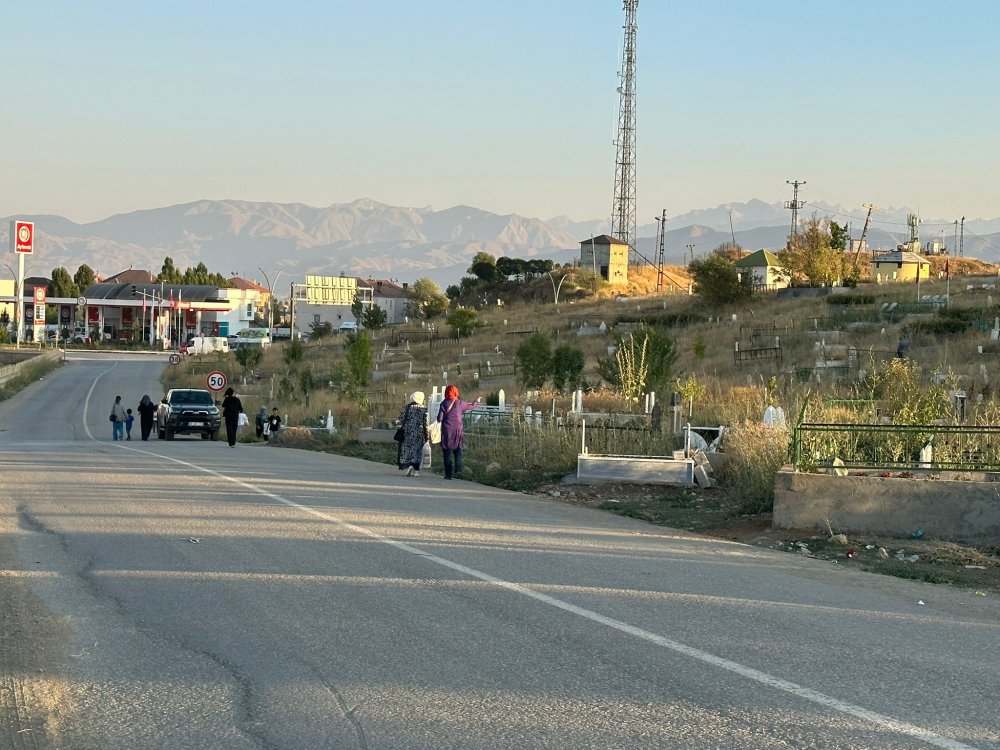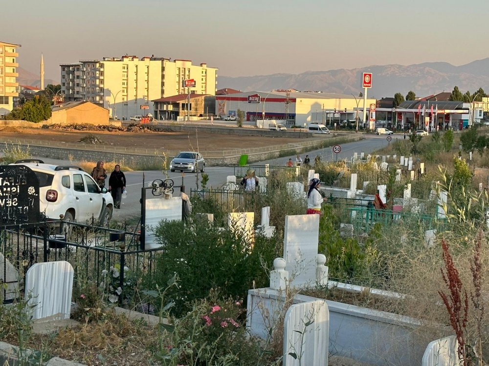 Hemen hemen ilçenin tüm cenazelerin defnedildiği mezarlıkta yer kalmayınca yola kadar indiği görüldü.