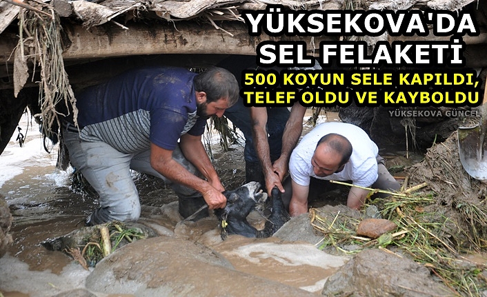 Yüksekova ilçesinde öğlen saatlerinde etkili olan yağışlar sele neden olunca, 500 koyun sele kapılıp telef oldu ve kayboldu.