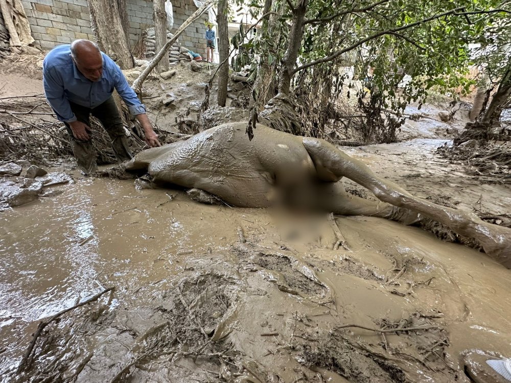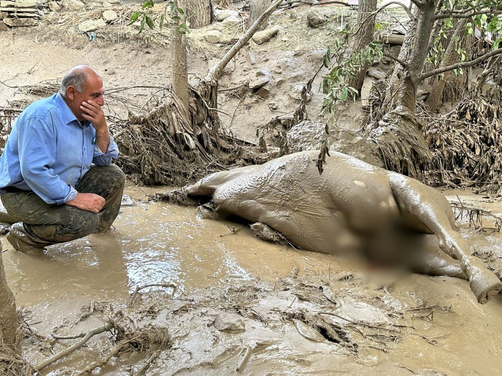 Yüksekova ilçesinin Köycük (Müşan) köyünde bastıran sağanak yağışın sele dönüşmesi sonucu köyün tümü zarar görürken, bir vatandaş ise selde telef olan atının başında saatlerce ayrılmadı.
