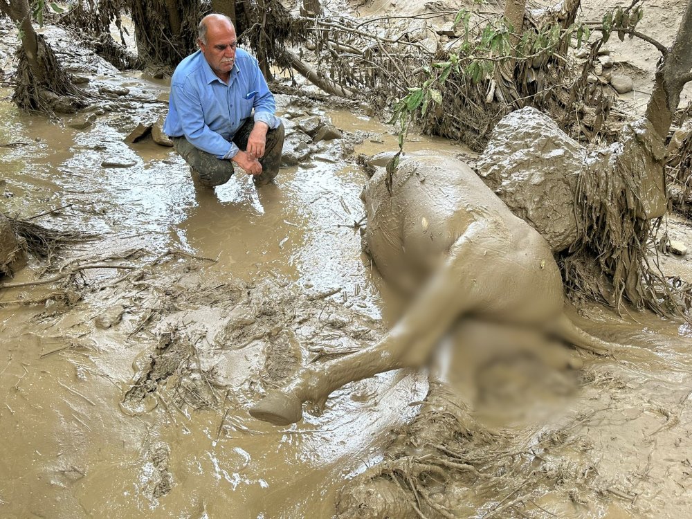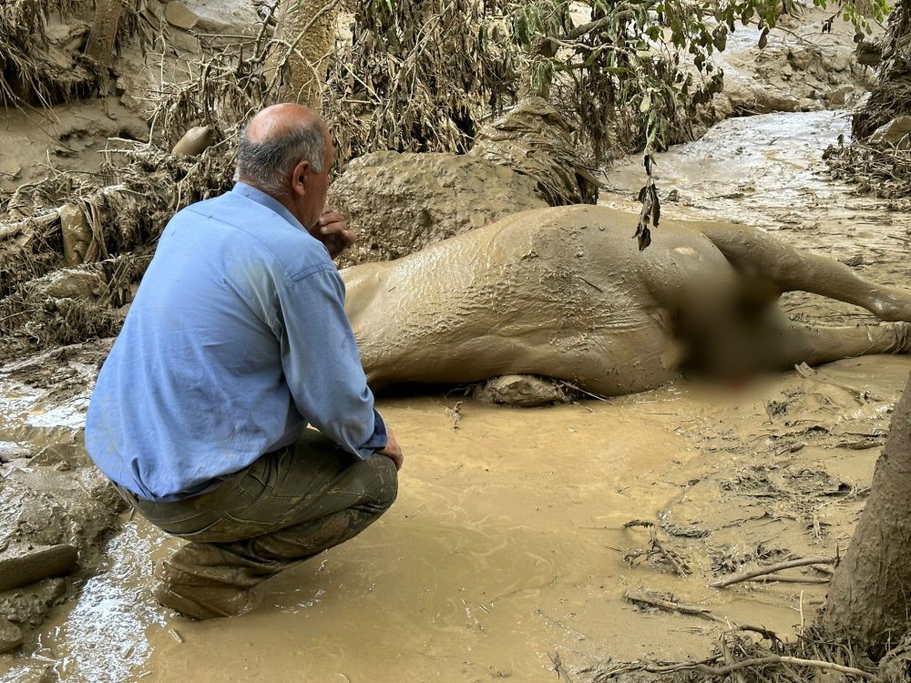 Yaşanan sel felaketinde telef olan atının başında saatlerce bekleyen vatandaş ise görenleri üzüntüye boğdu.