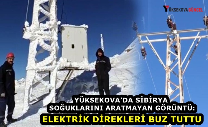 Yüksekova ilçesinin yüksek rakımlı dağların etkili olan Sibirya soğukları elektrik direğini böyle dondurdu.