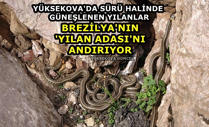 Yüksekova ilçe merkezine 30 kilometre uzaklıkta bulunan 'Yılan Pınarı' bölgesinde sürü halinde güneşlenen yılanlar, Brezilya'nın yılan adasını andırıyor.