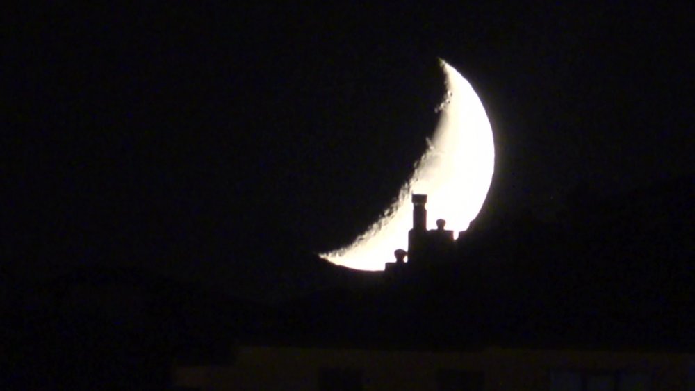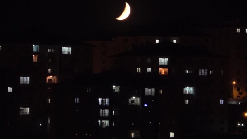 Yüksekova ilçesinde görülen hilal şeklindeki yarım ay, kartpostallık görüntüsüyle hayran bıraktı.