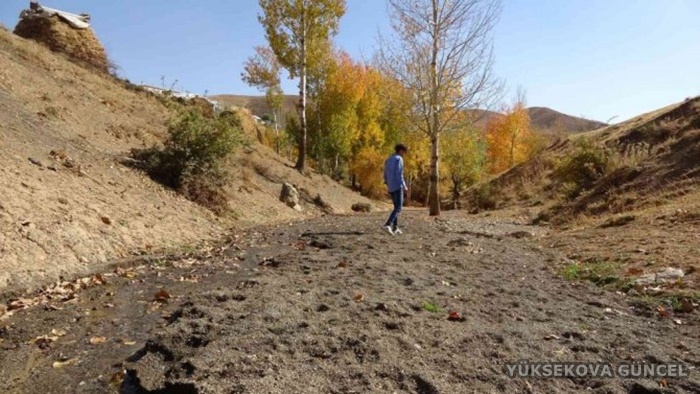 Yüksekova ilçesinde ilkbahar mevsiminde gürül gürül akan dere, iklim değişikliği nedeniyle tamamen kuruyarak yol olarak kullanılıyor.