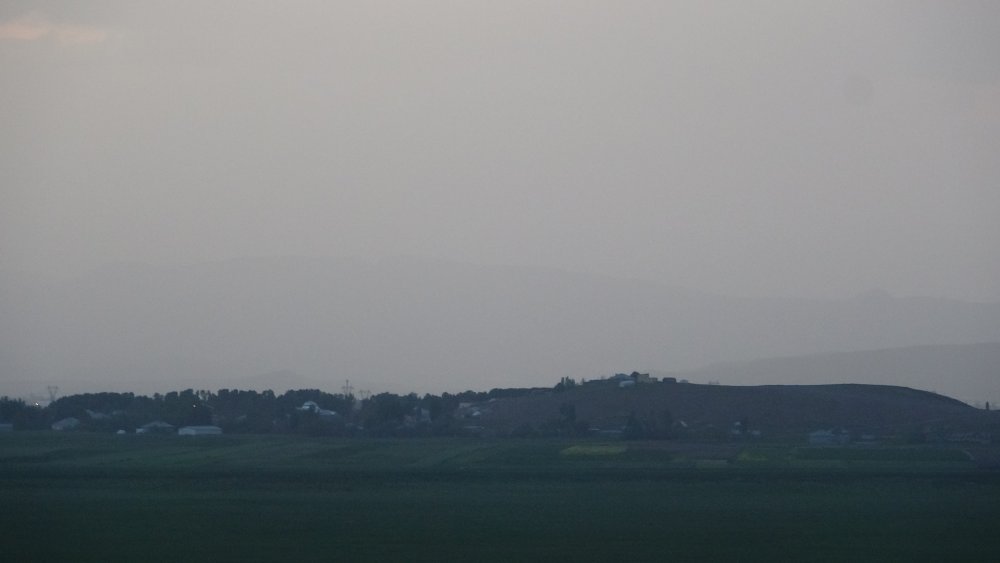 Akşam sıcakların azalması ile dışarı çıkan vatandaşlar, toz bulunun altında kaybolan Cilo Dağları'nın fotoğrafını çekmeyi ihmal etmedi.