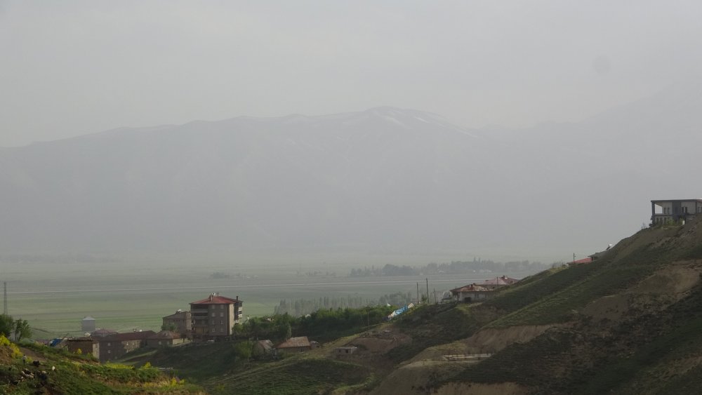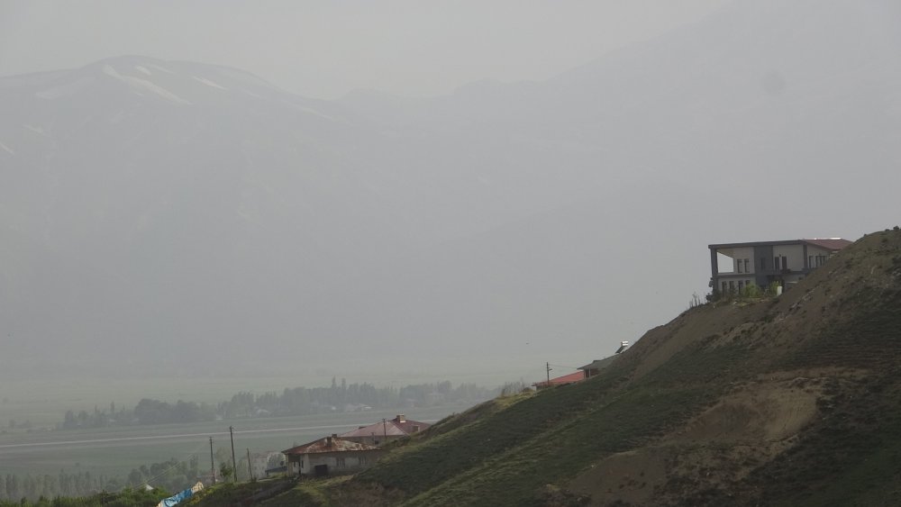 Belli aralıklarla yağan yağmur, rüzgarın da etkisiyle hayatı olumsuz yönde etkilerken, akşam saatlerinde dağlar toz bulutu içinde kayboldu.