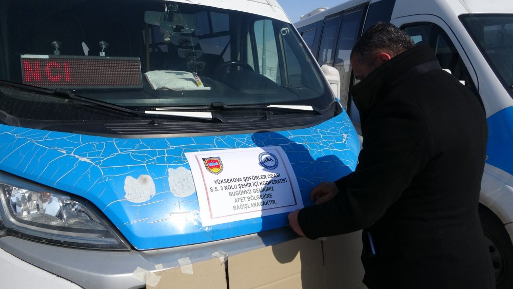 Yüksekova Şoförler ve Otomobilciler Esnaf Odası ile S.S. 3 Nolu Şehir İçi Kooperatifine bağlı şehir içi minibüs esnafı, bugünkü gelirlerini depremzedelere bağışlamak için yolcu taşıdı.