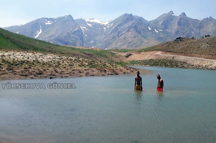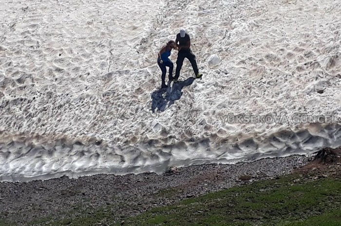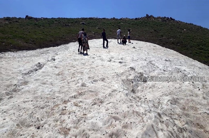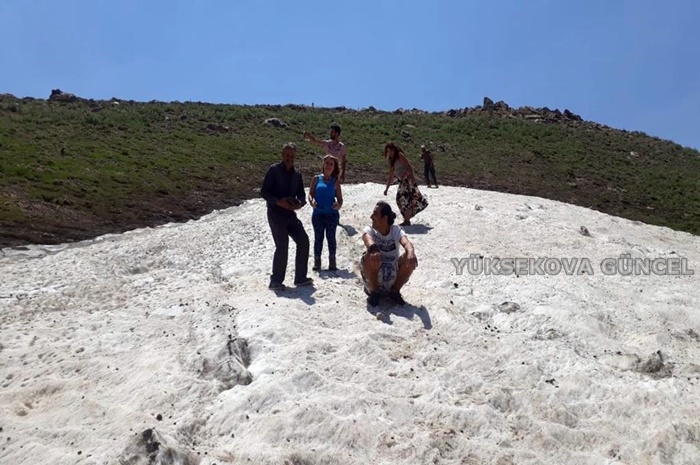 Yüksekova ilçesine farklı illerden gelen doğaseverler, 2 bin 500 rakımdaki Mergezer Yaylası’nda temmuz ayına rağmen karın keyfini çıkardı.