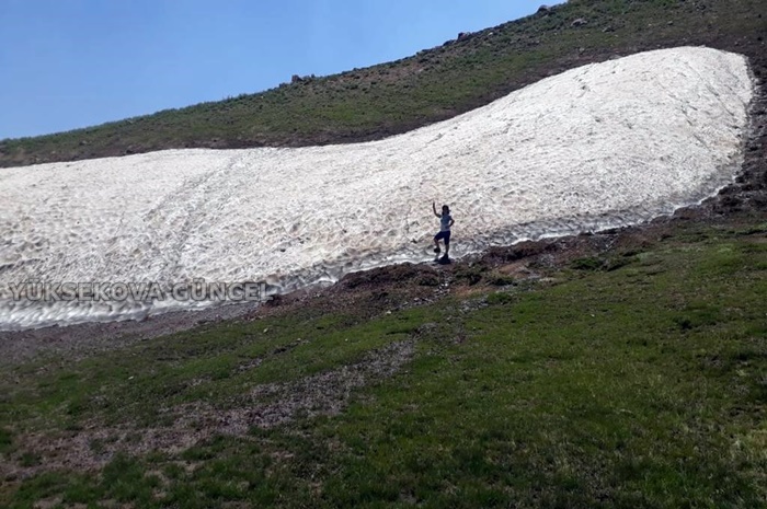 Temmuz Ayının bitmesine rağmen karın karşısında şaşıran Mehmet Deniz Gültekin; Daha önce güneydoğuyu doğru düzgün görmemiş birisi olarak bu eşsiz deneyimimi Hakkari’nin Yüksekova ilçesinde yaşadığım için çok mutluyum.